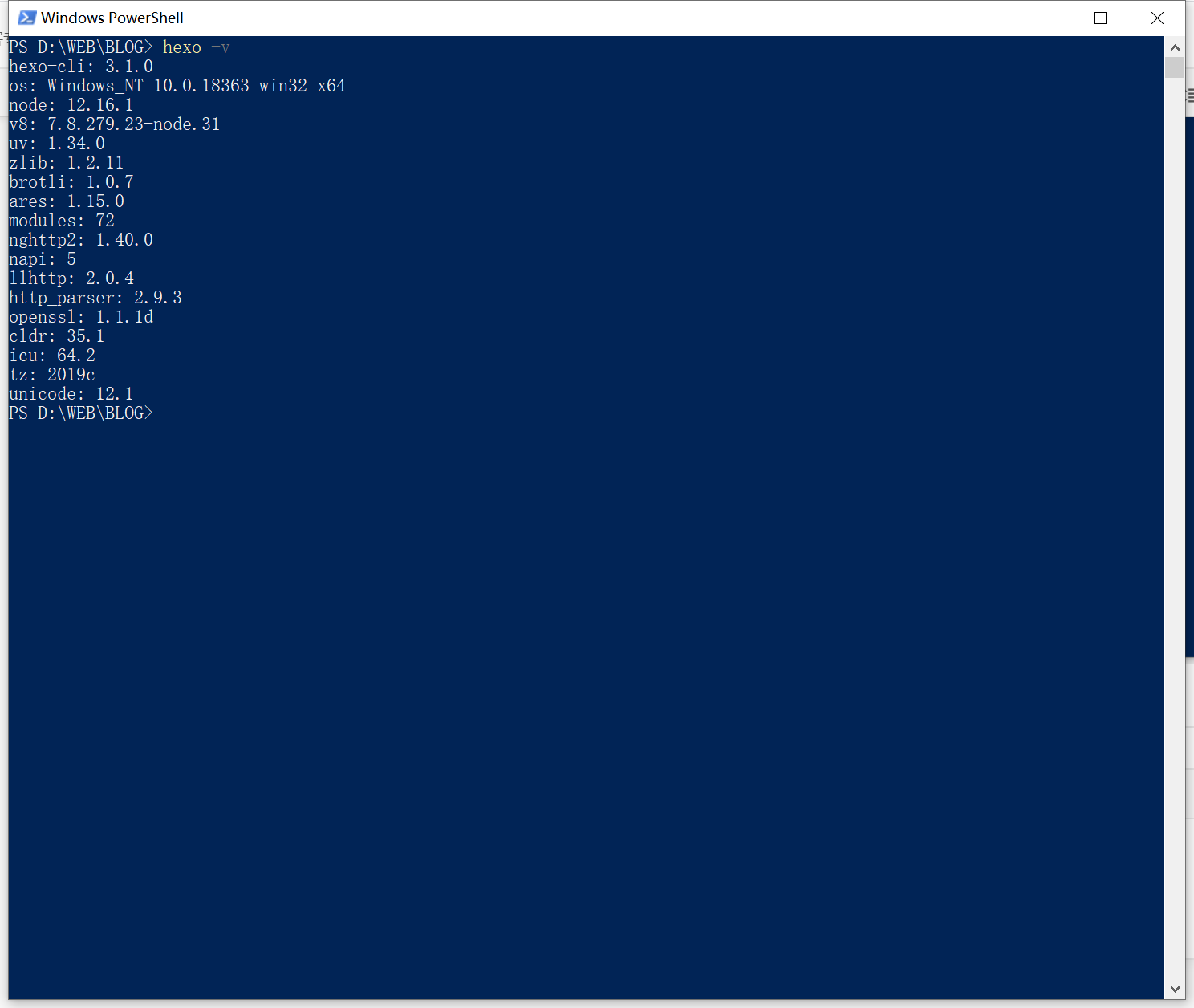 1 | hexo -v |
