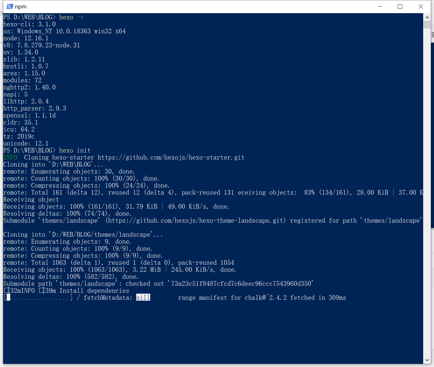 然后进行初始化Hexo