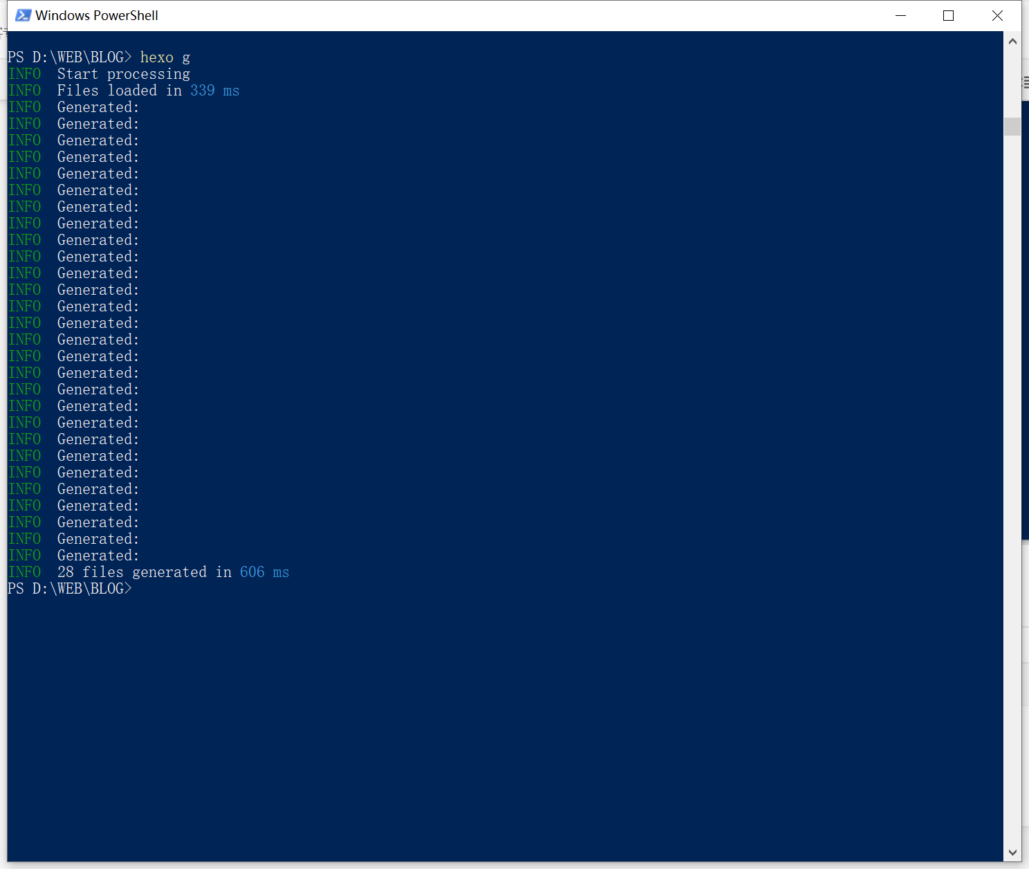 1 | hexo g |