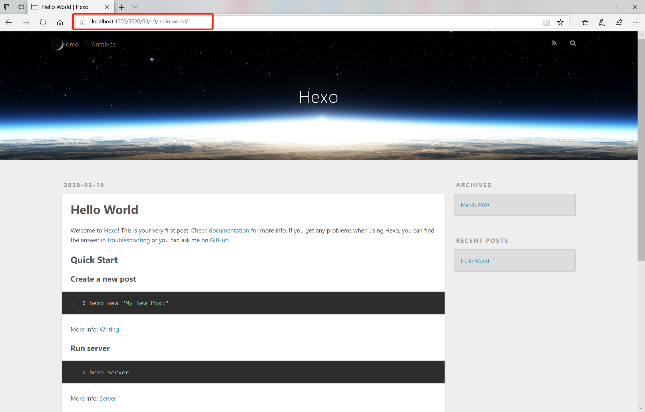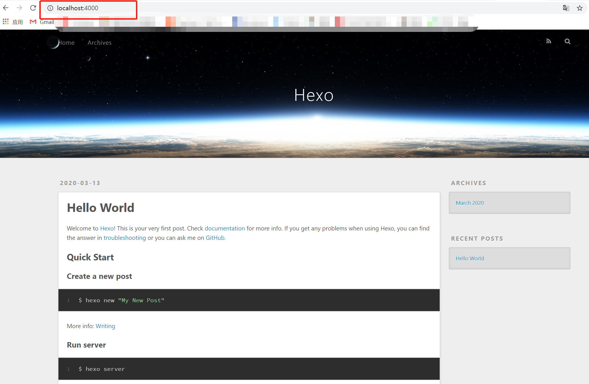 1 | hexo s |