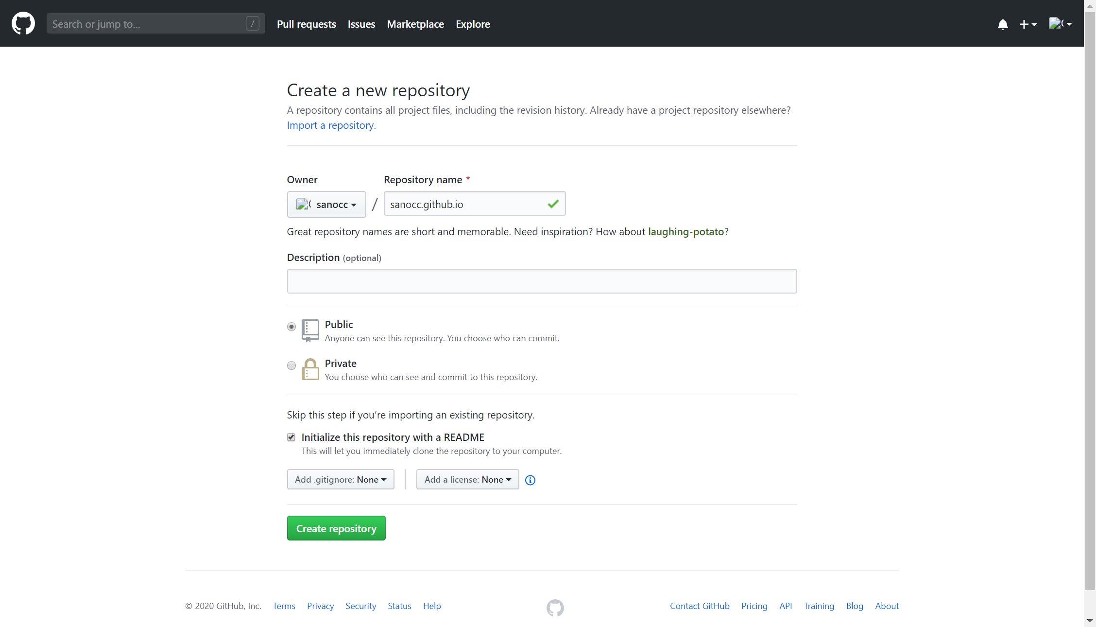 如图所示,然后点击 Create repository 就完成了新仓库的创建。