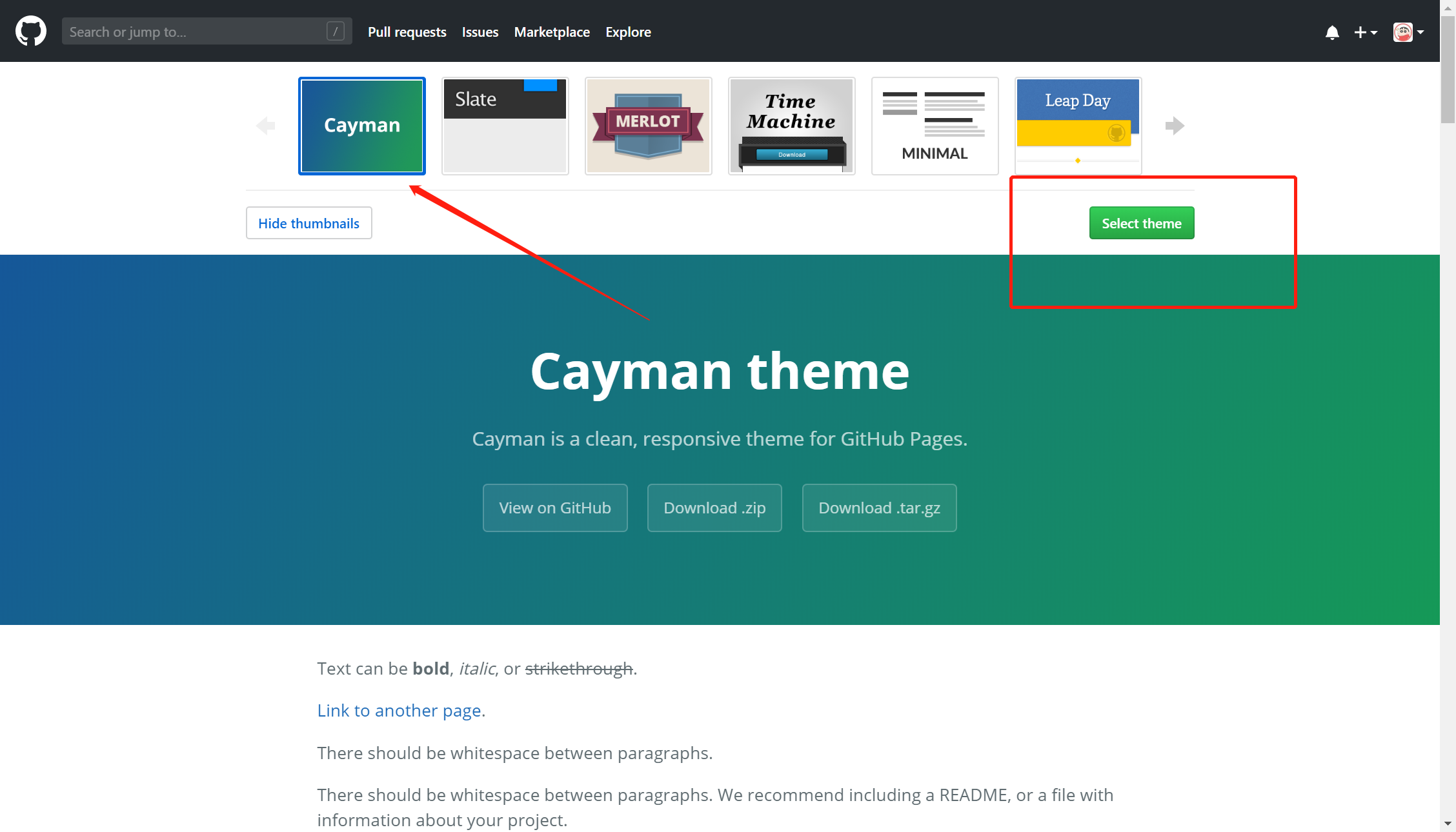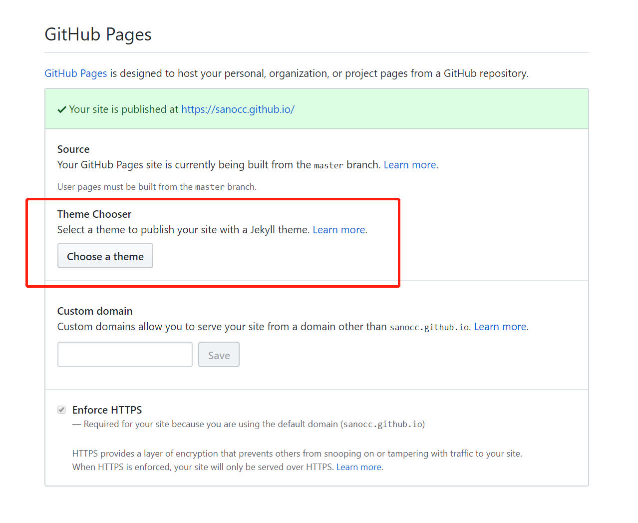 向下拉到最后有个GitHub Pages,点击Choose a theme选择一个主题。