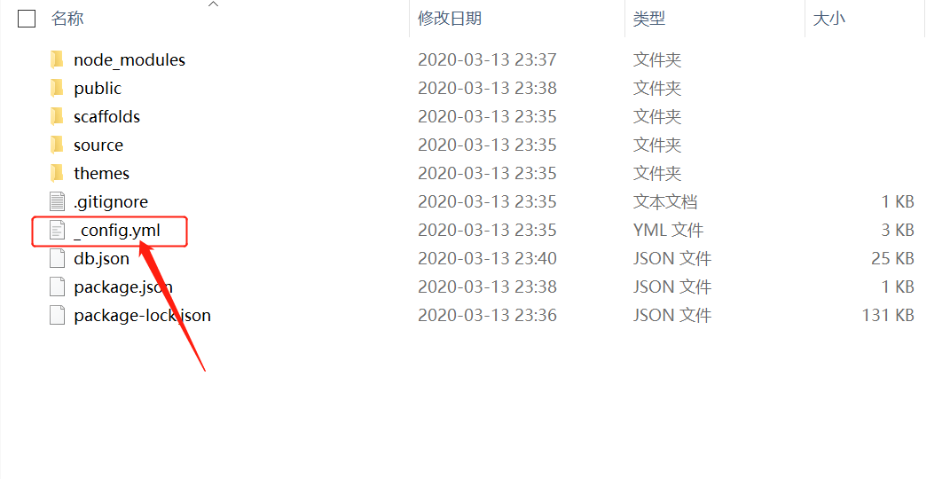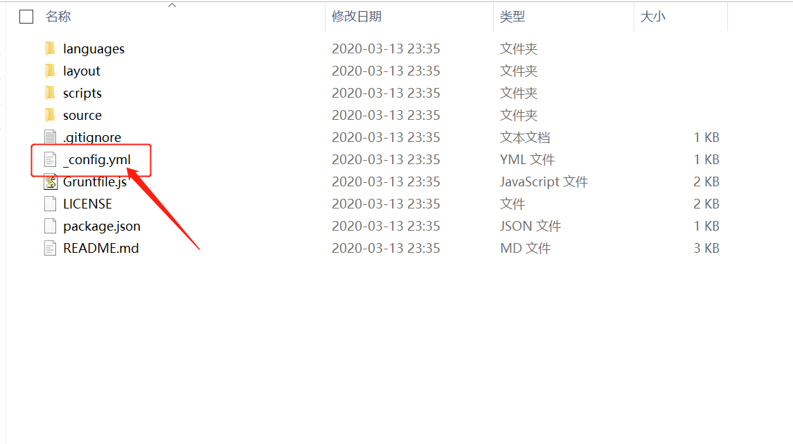 进入根目录里的themes文件夹,里面也有个_config.yml文件,这个称为主题配置文件,如下图
