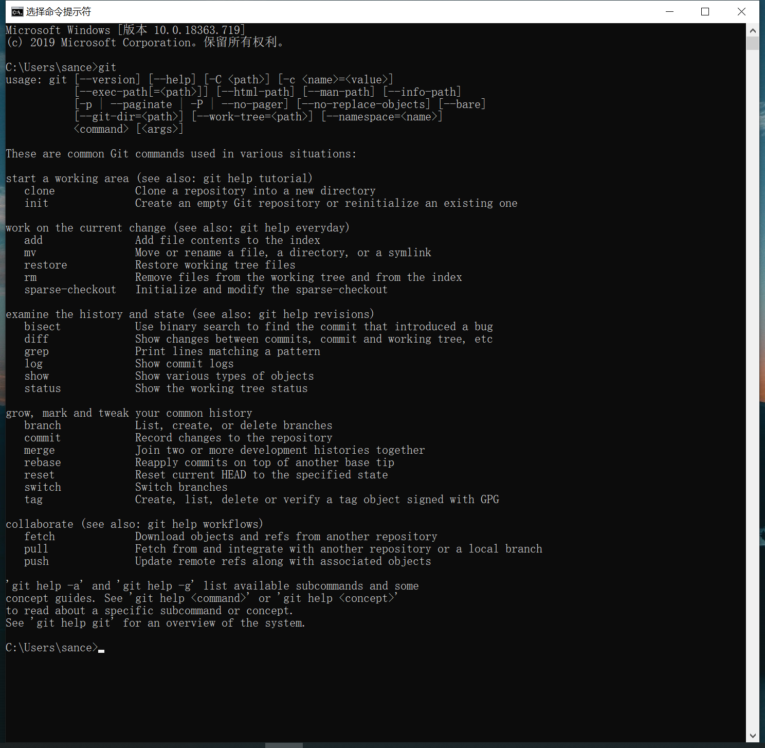 在cmd窗口中,输入git显示如下就是安装成功啦!