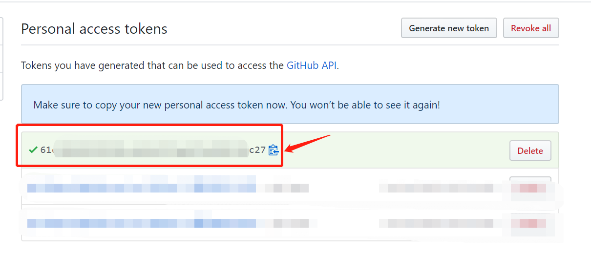 复制生成的token,(再关闭网页这个token就没法复制了)